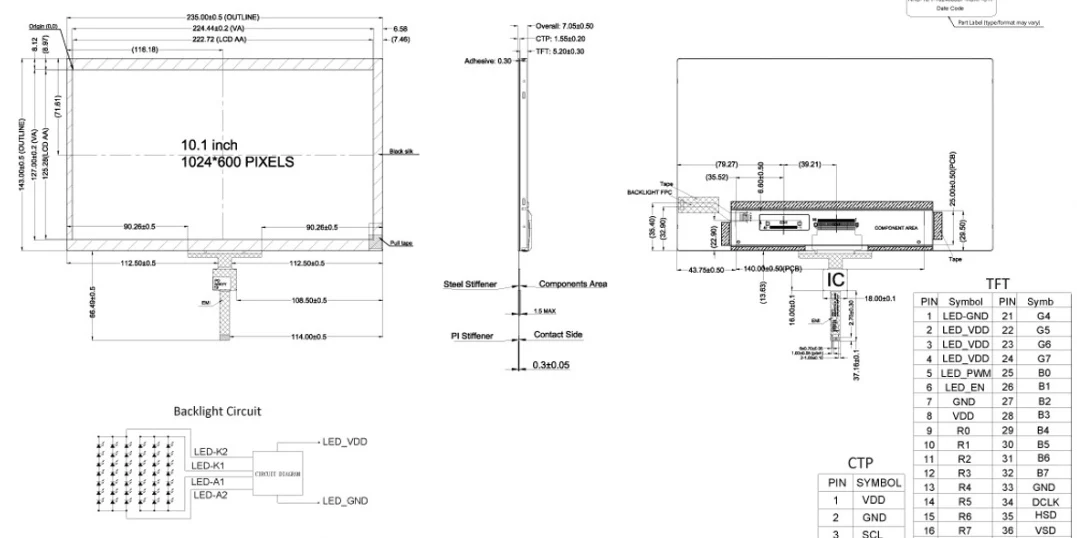 Оның жіңішке өлшемдері 235 мм × 143 мм × 14.05 мм. 3,3в және 40 істікшелігі 100 PIN-дің FFC кабелін (6 PIN-код) пайдаланады, 10,1 дюймдік PCAP Source модулі температурада -20 ° C-тан 70 ° C-қа дейін, температура -30 ° C-қа дейін жұмыс істейді және қатты ортада, тіпті қатал ортада да сенімді жұмыс істейді.