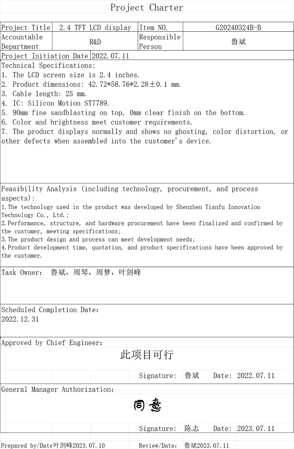 Қытайдағы бұрыннан келе жатқан СКД жеткізушісі және өндірушісі ретінде TF әрқашан жоғары сапалы өнімдерді шығаруға бағытталған. 2,4' Wide Temp TN TFT СКД экран модулі негізгі микроконтроллерлермен үйлесімді. Әдеттегі жарықтығы 280–300 кд/м² және 200:1 контраст қатынасы.