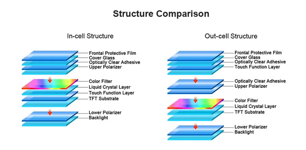 Ұяшық ішіндегі сенсорлық экран және дәстүрлі ұяшықтан тыс сенсорлық экран