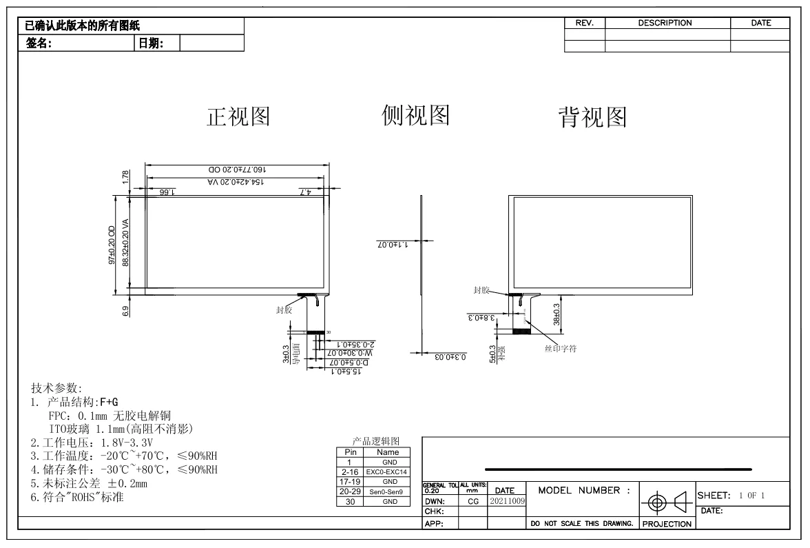 97.00 × 160.77 × 1,10 мм (сенсор құрылымы; Толеранттылық: ± 0.20 ММ)